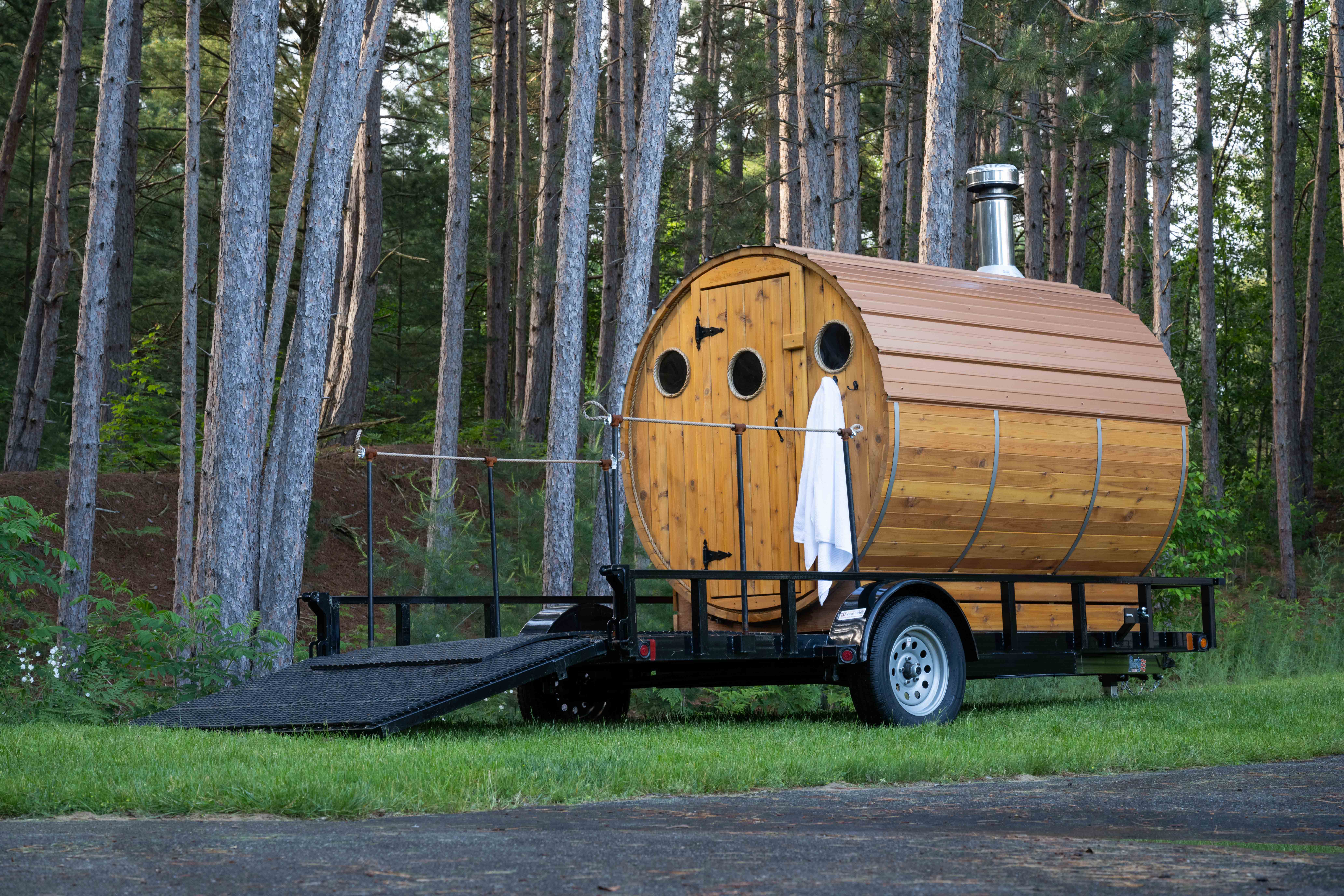The 6 person sauna and trailer require a flat space that is approximately 9ft x 20ft that is accessible with a vehicle.